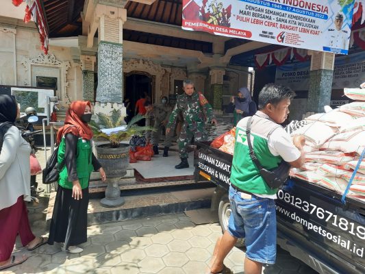 Persindonesia.com Jembrana,Babinsa Desa Melaya Koramil 1617-03/Melaya, Sertu I Gede Sujana memantau dan turut serta membantu membagikan Bantuan Sembako dan Bantuan Beras CPP (Cadangan Pangan Pemerintah) kepada warga masyarakat sebanyak 753 orang. Kegiatan pembagian sembako tersebut di laksanakan di Kantor Desa Melaya, Kecamatan Melaya, Kabupaten Jembrana, Minggu (30/04/2023).
