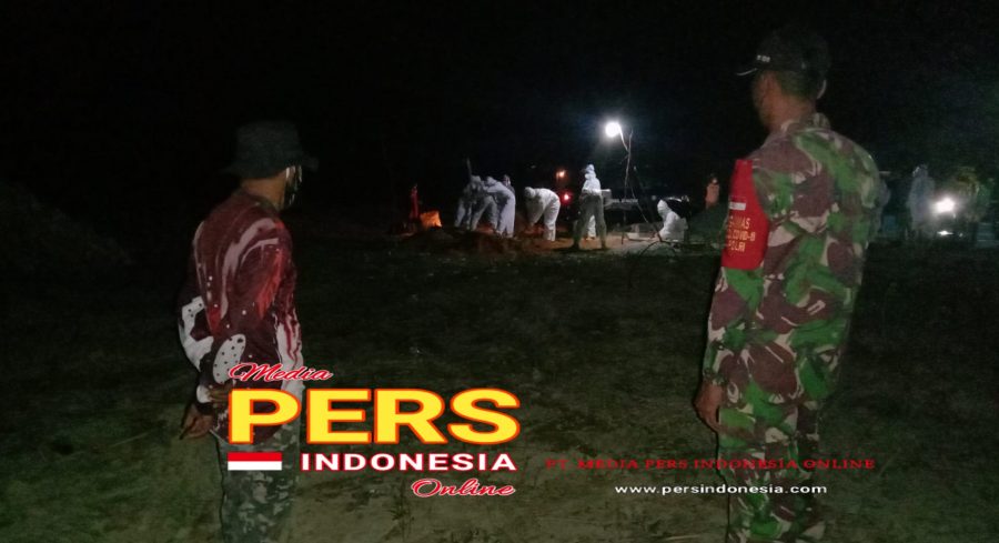 Serda Robet Tri Wibowo kepada awak media mengatakan,” Pemakaman Jenazah terpapar Covid-19 yang dilaksanakan oleh Tim Satgas Covid-19 dan dihadiri oleh keluarga dan kerabat.” Terangnya.