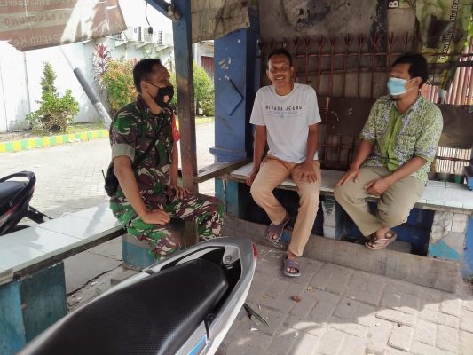 Anggota Koramil 06/Cibodas dengan cara melaksanakan Komsos pendisiplinan protokol kesehatan dan mengimbau vaksin, hal itu untuk mencegah penyebaran virus Corona.