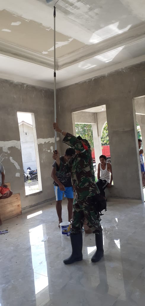 MEMBALONG — Babinsa Koramil 414-04/ Membalong Serda Paryanto , Minggu (25/04/2021) bergotong royong pengecatan dan pembersihan musholla Al Muhyi di Rt 09 Desa Bantan Kabupaten Belitung,