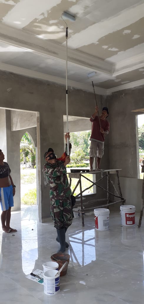 MEMBALONG — Babinsa Koramil 414-04/ Membalong Serda Paryanto , Minggu (25/04/2021) bergotong royong pengecatan dan pembersihan musholla Al Muhyi di Rt 09 Desa Bantan Kabupaten Belitung,