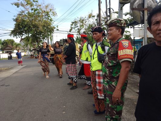 Sementara itu Dandim 1617/Jembrana Letkol Inf Teguh Dwi Raharja, S.Sos dalam keterangannya mengatakan kehadiran Babinsa saat pelaksanaan kegiatan umat hindu dalam merayakan rangkaian hari raya Nyepi Tahun Caka 1945 tiada lain untuk mengingatkan kepada umat Hindu untuk selalu menjaga keamanan dan ketertiban. Disamping hal tersebut kehadiran Babinsa untuk membantu Pecalang agar pelaksanaan pengerupukan oleh umat Hindu dapat berjalan dengan , aman dan lancar.