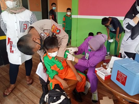 Sertu Indra Gunawan disela-sela kegiatan menuturkan,”Bahwa pelaksanaan vaksinasi menggunakan vaksin sinovak yang diberikan kepada anak kelas 1 sampai dengan kelas 6,”Tuturnya.