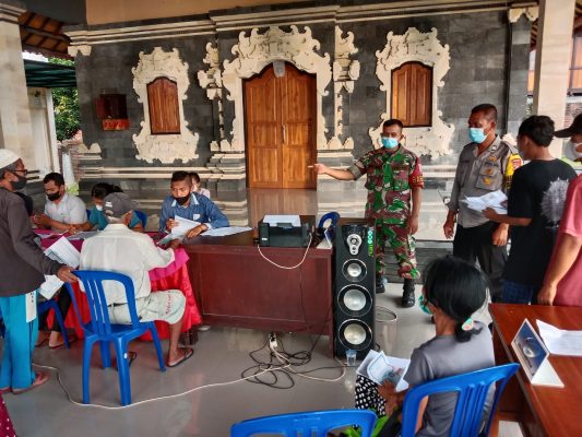 Persindonesia.com Jembrana – Penegakan disiplin protokol kesehatan saat pembayaran Bantuan Program Sembako (BPS) dilakukan oleh Babinsa Candikusuma Koramil 1617-03/Melaya. Hal tersebut untuk menghindari terjadinya kerumunan massa guna mencegah terjadinya penyebaran Covid-19.