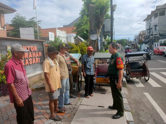 Danramil 01/Tgr Mayor Kav Andi Budiman menjelaskan, Babinsa menanyakan kepada salah satu pengemudi becak, bagaimana kondisi pendapatan di bulan – bulan ini.