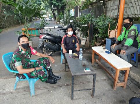 Kodam Jaya, Tangerang,Persindonesia.com – Menuju tatanan baru anggota Koramil 05/Ciputat Serda Muajat melakukan penegakan protokol kesehatan dan tetap menggunakan masker. Komsos di wilayah Kelurahan Rempoa Kecamatan Ciputat Timur Kota Tangsel, Sabtu (07/05/2022).