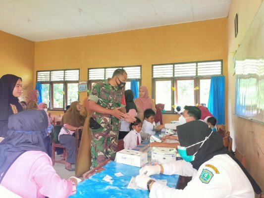 Selat Nasik – Dalam rangka mendukung program vaksinasi anak usia 6-11 tahun, BabinsaKoramil 06/Selat Nasik, melakukan pendampingan pemberian vaksin kepada anak di SDN 3,Petaling Selat Nasik Kecamatan Selat Nasik,Senin 10/01/2022.