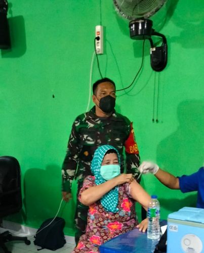 Tanjungpandan – Serda Supriyanto Babinsa Desa Dukong Koramil 414-01/Tanjungpandan,Kamis 02/12/ 2021 melaksanakan pendampingi kegiatan Vaksin Covid-19 tahap yang ke 2 bertempat di Kantor Desa Dukong Kecamatan Tanjungpandan.