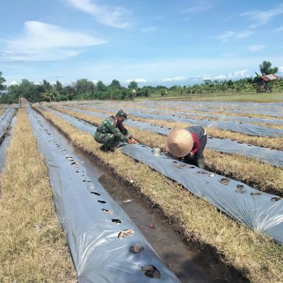 Persindonesia.com Jembrana – Babinsa Lelateng Koramil 1617-01/Negara Sertu Edi Suharno bersama warga melakukan penanaman bibit cabe. Bibit cabe yang ditanam tersebut merupakan bantuan Pemerintah Kabupaten Jembrana dalam program ketahanan pangan, Senin (31/10/2022)