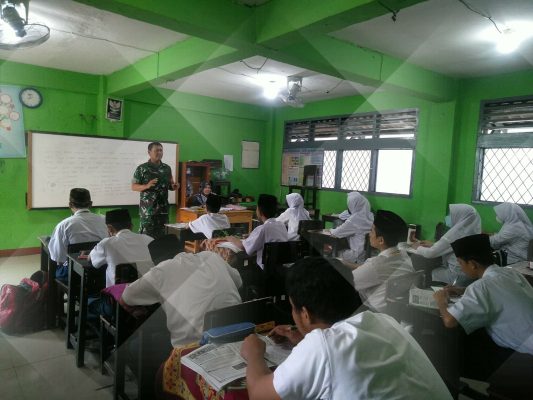 Kodam Jaya, Tangerang,Persindonesia.com – Babinsa Kreo, Koramil 04/Ciledug, Kodim 0506/Tgr Serda Kasino memberikan materi Wawasan Kebangsaan kepada siswa dan siswi Mts Mamba’ul Khair Kelurahan Kreo Kecamatan Larangan Kota Tangerang, Selasa (01/11/2022).