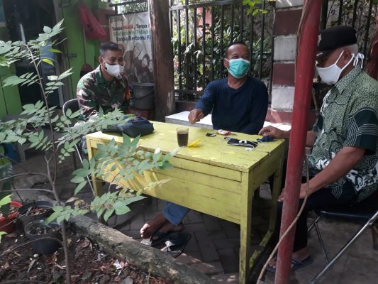Sertu Karsim anggota Koramil 02/Btc menghimbau, kepada warga dan mengajak Tri pilar tingkat kelurahan untuk bersama-sama menegakan disiplin protokol kesehatan.
