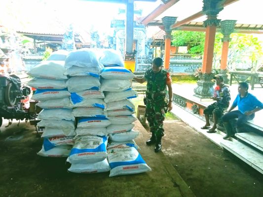 Persindonesia.com Jembrana – Babinsa Tegalcangkring Koramil 1617-02/Mendoyo Serda Suwardi memberikan pendampingan saat berlangsungnya pendisitribusian pupuk bersubsidi di Subak “Tegal Gintungan” Kelurahan Tegalcangkrimg, Kecamatan Mendoyo, Kabupaten Jembrana, Selasa (22/11/2022)