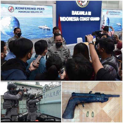 Persindonesia.com Jakarta, KN Ular Laut 405 menemukan 1 (satu) pucuk senjata rakitan di sebuah kapal yang sedang berlabuh jangkar di Perairan Teluk Dalam Ambon. Hal tersebut dikatakan oleh Kepala Bakamla RI Laksdya TNI Dr. Aan Kurnia saat melakukan konferensi pers di Aula Mabes Bakamla RI, Jl. Proklamasi No. 56, Menteng, Jakarta Pusat, Jumat (1/4/2022).