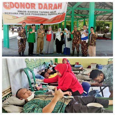 Tapung Hilir, – Pimpinan Anak Cabang (PAC) Pemuda Ansor dan Banser Tapung hilir bekerjasama dengan PMI Cabang Kampar dan Puskesmas Tanah Tinggi mengadakan bakti sosial dengan melakukan kegiatan Donor Darah, Sabtu (16/07/2022).