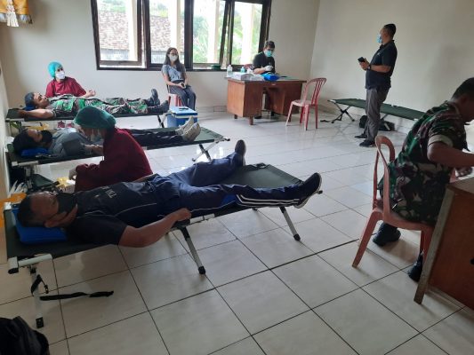 Pgs. Danramil 1617-03/Melaya Lettu Inf I Made Sujana Arianta bersama anggota Koramil 1617-03/Melaya. Dikesempatan tersebut Lettu Inf I Made Sujana bersama anggotanya turut menyumbangkan sekantong darahnya. Sebelum dilaksanakan pengambilan darah para pendonor menjalani serangkaian pemeriksaan kesehatan untuk bisa menyumbangkan darahnya.