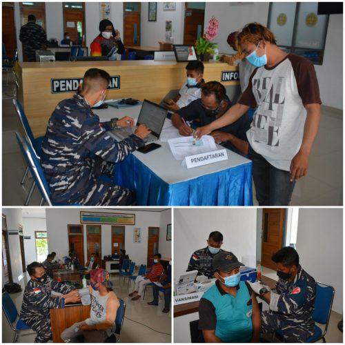 Guna mendukung percepatan penanganan pandemi Covid-19 serta untuk menyukseskan program pemerintah yang mencanangkan “Sehari Sejuta Vaksin”. TNI Angkatan Laut dalam hal ini Lantamal X Jayapura kembali melaksanakan Vaksinasi Covid-19 secara terpusat yang bertempat di Balai Pengobatan TNI AL Amfhibi, Jumat (30/07/21).