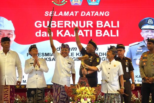 PersIndonesia.Com,Klungkung- Gubernur Bali Wayan Koster bersama Kepala Kejaksaan Tinggi (Kajati) Bali Ketut Sumedana dan Bupati Klungkung I Made Satria meresmikan Bale Kertha Adhyaksa serentak pada 53 Desa, 6 Kelurahan dan 125 Desa Adat Se-Kabupaten Klungkung yang tandai dengan penyambutan keris, Kamis (22/5/2025).