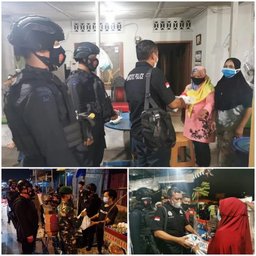 Personil gabungan TNI POLRI yang terdiri dari Brimob Polda Sumut, Dit Samapta Polda Sumut, Sat Sabhara Polrestabes Medan serta TNI bagikan bansos kepada masyarakat yang terdampak Covid-19, Sabtu(24/7/21) malam. Pemberian bansos ini terus dilakukan guna percepatan penyaluran bantuan kepada masyarakat.