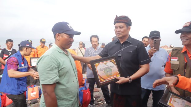 Persindonesia.com Jembrana – Sebanyak 22 orang yang terdiri dari 12 nelayan dan 10 orang relawan yang membantu proses evakuasi korban tenggelamnya kapal penyeberangan Tunu Pratama Jaya mendapat piagam penghargaan dari Bupati Jembrana, I Made Kembang Hartawan yang diserahkan di pesisir Pantai Pebuahan, desa Banyubiru, Selasa (8/7).
