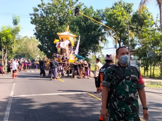 Persindonesia.com Jembrana – Babinsa Mendoyo Dangin Tukad Koramil 1617-02/ Mendoyo Serda Putu Wiantara bersinergi dengan Bhabinkamtibmas dan Pecalang melaksanakan pengamanan saat berlangsungnya pengabenan salah satu warga di desa binaan. Selain memberikan pengamanan guna memperlancar prosesi upacara pengabenan, Babinsa juga melakukan pendisiplinan agar pelaksanaan pengabenan di masa pandemi Covid-19 saat ini tidak mengabaikan Prokes, Minggu (12/06/2022).