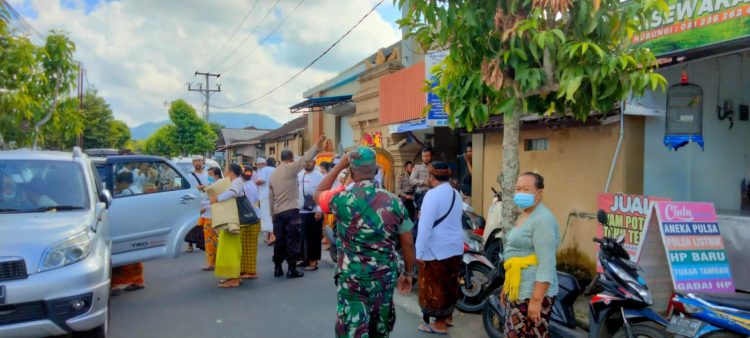 Babinsa Desa Batuagung Koramil 1617-01/Negara Pelda I Nyoman Suarken saat di konfirmasi menuturkan selain memberikan pengamanan guna kelancaran prosesi upacara Rsi Yadnya Padiksan kehadirannya untuk memastikan setiap tahapan upacara telah mematuhi protokol kesehatan.