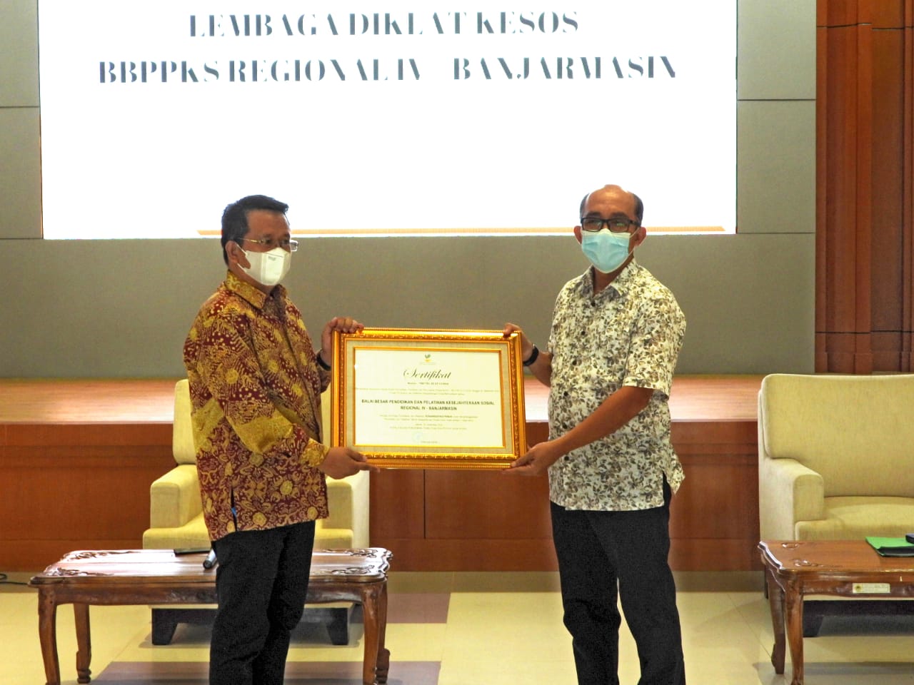 Balai Besar Pendidikan dan Pelatihan Kesejahteraan Sosial (BBPPKS) Banjarmasin memperoleh penilaian kategori Terakreditasi Penuh, tahun ini. Capaian nilai akreditasi BBPPKS Banjarmasin merupakan yang terbaik dari 6 Balai Besar Pendidikan dan Pelatihan Kesejahteraan Sosial lainnya di lingkungan Kementerian Sosial.