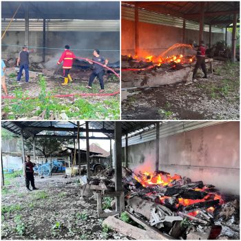 Adanya material mudah terbakar berupa gelondongan kayu nangka yang tersimpan lama di dalam gudang, diduga dapat mempercepat penyebaran api