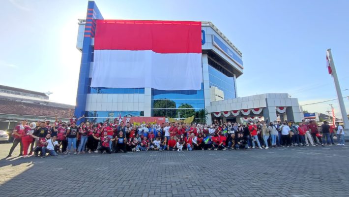 JEMBER, Persindonesia – Bendera merah putih ukuran raksasa berkibar di PT. BANK RAKYAT INDONESIA Cabang JEMBER kantor cabang Bank Rakyat Indonesia Jember. Dalam rangka memperingati HUT Republik Indonesia ke-77. Jember (19/08/22)