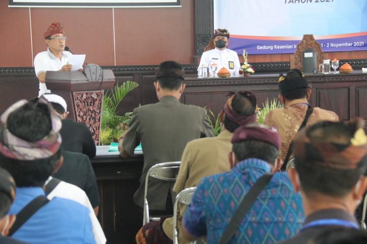 Pelatihan dilaksanakan di Gedung Kesenian Ir. Soekarno, Senin (01/11/2021) diikuti bendesa adat se – Kabupaten Jembrana. Adapun tujuan kegiatan tersebut untuk memberikan peningkatan pemahaman terhadap pembangunan Desa Adat, sehingga mampu meningkatkan pembangunan di wilayah Desa Adat menuju Era Baru dan masyarakat Jembrana Bahagia.