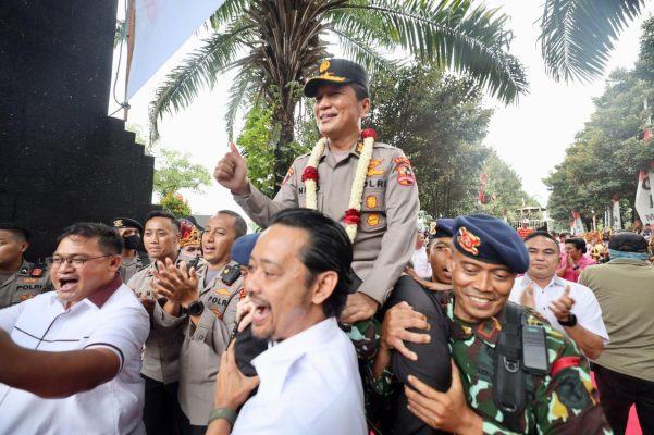 Jawa Timur,Persindonesia.com- Prosesi pelepasan Irjen Pol Nico Afinta usai darmabaktinya sebagai Kapolda Jatim diwarnai dengan aksi panggul yang dilakukan oleh jajaran anggota Polda Jatim, pada Kamis (20/10 /2022). Irjen Pol Nico Afinta dipanggul saat berjalan keluar dari Mapolda Jatim.