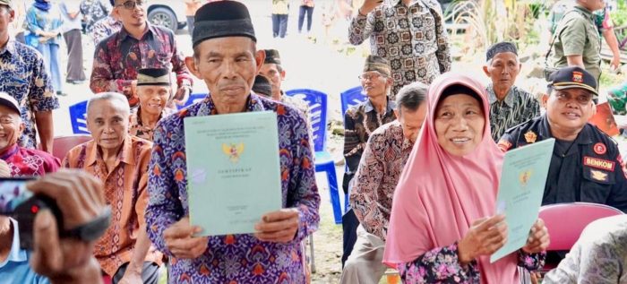 Suasana haru tak terbendung saat Mbah Tupon bersama sang istri menerima kembali dokumen penting tersebut. Keduanya tampak bersujud syukur sebagai ungkapan lega setelah melalui proses panjang yang penuh ketidakpastian.