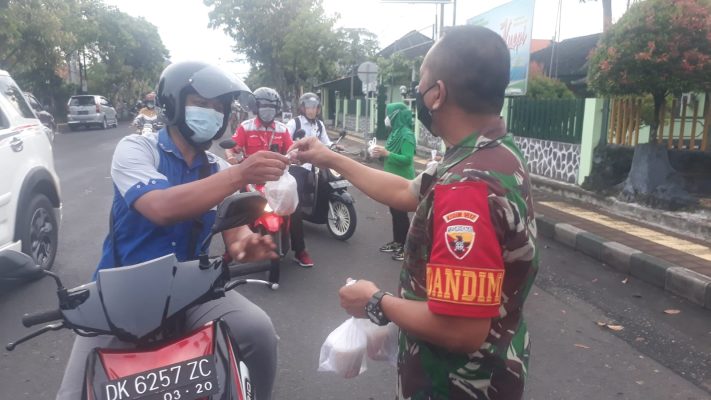 Persindonesia.com Jembrana – Menjelang berbuka puasa di Bulan Suci Ramadhan Kodim 1617/Jembrana membagikan takjil gratis. Puluhan paket takjil dibagikan langsung oleh Dandim 1617/Jembrana bersama Ketua Persit KCK Cabang XXXVI Kodim 1617/Jembrana beserta Anggota Makodim 1617/Jembrana kepada masyarakat dan pengendara yang melintas di Jalan Ngurah Rai Negara tepatnya di Depan Makodim 1617/Jembrana, Senin (18/04/2022)