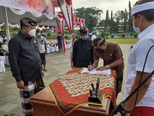Persindonesia.com Gianyar – Sebanyak 13 desa di Kabupaten Gianyar akan menggelar pemilihan perbekel/kepala desa secara serentak pada 16 Januari 2022 mendatang. Untuk menjamin pelaksanaan pemilihan perbekel serentak berjalan dengan damai, Pemkab Gianyar melalui Dinas Pemberdayaan Masyarakat dan Desa (PMD) menggelar deklarasi damai para peserta pemilihan perbekel.