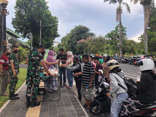 Denpasar (Persindonesia.com) – Bulan Puasa menjadi momentum untuk dapat saling berbagi dan menebarkan kebaikan. Sebagai wujud kepedulian dan kebersamaan dalam menyemarakkan Bulan Suci Ramadan 1443 H, Bintaljarahdam IX/Udayana membagikan takjil gratis kepada masyarakat yang melintas di depan Makodam IX/Udayana, Jalan Udayana, Denpasar, Minggu (17/04/2022).