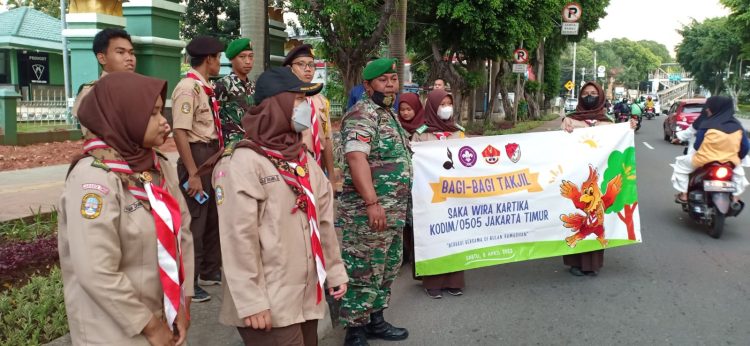 Persindonesia.com Kodim 0505/Jakarta Timur – Bulan Ramadhan yang penuh berkah, jelang berbuka puasa, anggota Kodim 0505/JT bersama Pramuka Saka Wira Kartika bagikan takjil kepada warga masyarakat sebagai wujud kepedulian terhadap warga yang menunaikan ibadah puasa, Sabtu (8/04/2023).