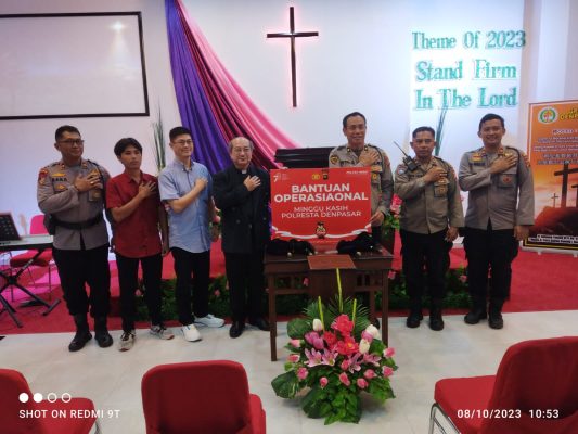 Denpasar – Polsek Denpasar Barat (Polsek Denbar) bersama Polresta Denpasar kembali menunjukkan komitmennya dalam membangun hubungan yang harmonis melalui komunikasi positif bersama masyarakat setempat dengan menggelar program Minggu Kasih di Gereja Pembinaan Iman (GPMII) di Jalan Gunung Talang 6 C Kelurahan Padangsambian Denpasar Barat, Minggu (8/10/2023) pagi.