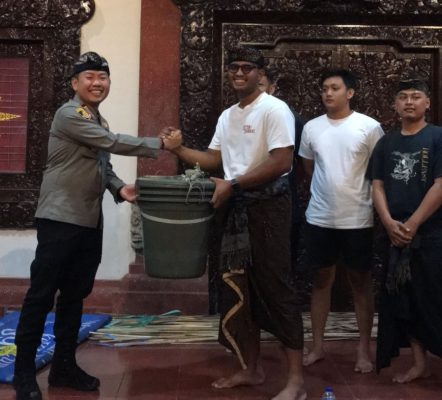 Di akhir kegiatan Sisabar, Kapolasek Denpasar Utara, menyerahkan bantuan sarana komunikasi berupa alat kebersihan berupa ember, sapu lidi,dan serok sampah yang diterima langsung oleh Krama Banjar Tainsiat.