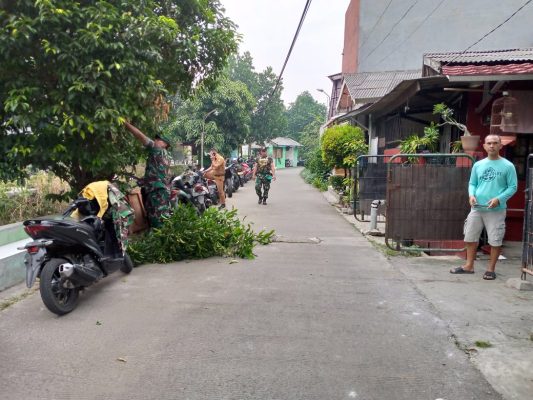 Kegiatan dilakukan dengan gotong-royong bersama masyarakat setempat berupa, pembersihan rumput-rumput liar dibahu jalan, di Jalan Raden Patah 003/005 Kelurahan Sudimara Barat Kecamatan Ciledug, Kota Tangerang, Selasa (09/05/2023).