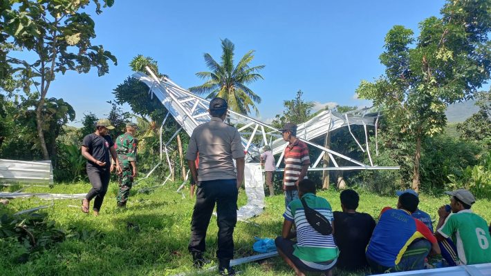 BONDOWOSO, Persindonesia – Bhabinkamtibmas dan Babinsa Desa Pandak didampingi Kepala Desa Pandak meninjau rumah ambruk akibat angin kencang. Minggu.(12/03/23)