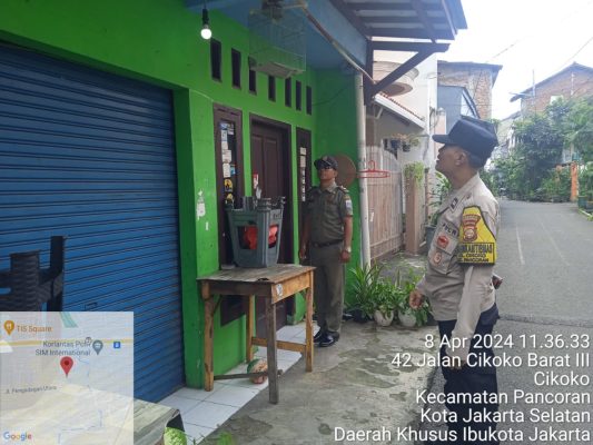 Persindonesia.com Jakarta, Senen siang tanggal 08 April 2024 Aiptu Nanang Krisnadi Bhabinkamtibmas Kelurahan Cikoko Pancoran JakSel sambangi warga door to door bersama Satpol PP Kelurahan pastikan rumah warga yang ditinggal Mudik dalam keadaan aman.