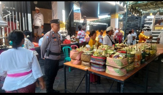 Bhabinkamtibmas Polsek Denpasar Barat Atensi Upacara Dewa Yadnya