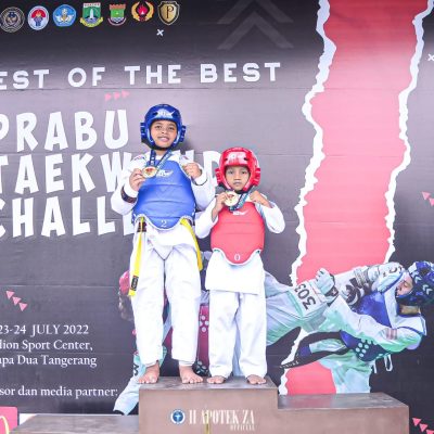 Tangerang,Persindonesia.com– Buah jatuh tidak jauh dari pohonnya. Pribahasa tersebut begitu tepat diberikan kepada M. Dzaki Hadiyanto dan Ezar Abinaya Hadiyanto yang merupakan putra pasangan Hadiyanto., M.Pd dan Ika Rustiana, AM. Keb, mampu meraih medali emas pada kejuaraan Prabu Taekwondo Challenge, tingkat nasional dilaksanakan di Indoor Stadium, Sport Center Kelapa Dua, Kabupaten Tangerang.