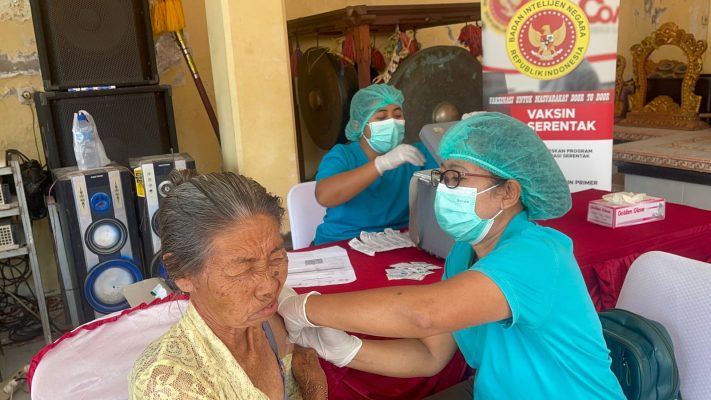 Persindonesia.com Gianyar- BIN dan Dinas Kesehatan Gianyar kembali menyisir 2 desa sekaligus di Kecamatan Gianyar, Kabupaten Gianyar. Adapun kegiatan vaksinasi yang dituju diantaranya di Desa Sumita vaksin diadakan di Banjar Pande dan di Desa Petak Kaja bertempat di Banjar Mantring. Vaksinasi dibantu langsung oleh kelian dusun, Babinsa dan Babinkamtibmas melaksanakan jemput bola ke rumah-rumah warga dibawa ke balai banjar untuk di vaksin booster.