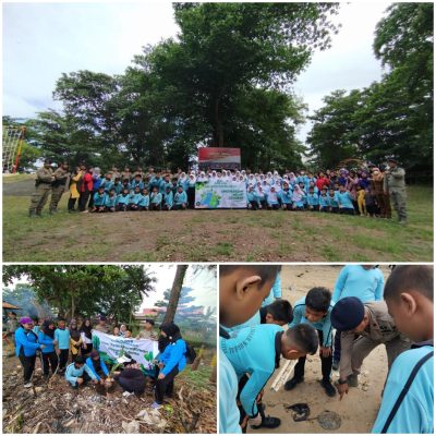 Kegiatan bersih pantai dan menanam pohon Kelapa ini Batalyon A Pelopor Satbrimob Polda Kaltim menggandeng siswa dan siswi SDN 008 Kota Balikpapan.
