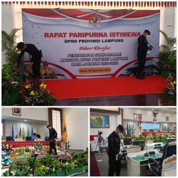 Persindonesia.com Lampung_Guna Pengamanan kegiatan Rapat Paripurna Istimewa DPRD Provinsi Lampung dalam rangka Pengucapan Sumpah/Janji Anggota DPRD Provinsi Lampung masa jabatan 2024-2029 di Gedung DPRD Provinsi Lampung dibawah pimpinan langsung Kasubden II Jibom Akp Mantun Manik selaku Kateam Sterilisasi dan Wakasubden I Wanteror selaku Kateam Escape. Senin (02/9/24)