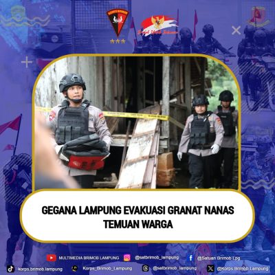 Persindonesia.com Brimob Lampung_Fast Respon Unit Jibom Gegana menindaklanjuti Perintah dari Komandan Satuan KBP Yustanto Mujiharso tentang Permintaan Bantuan Unit Jibom Detasemen Gegana oleh Polsek Baradatu Resort Way Kanan tentang temuan Satu (1) Barang Bukti UXO (Bom Granat Militer Jenis Granat Nanas) hasil temuan Masyarakat di rumah warga yang sudah tak berpenghuni. Senin 29/04/24
