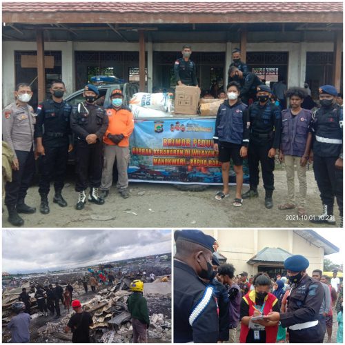 Dansat Brimob Polda Papua Barat Kombes Pol Semmy Ronny Thabaa menyampaikan bantuan ini merupakan wujud nyata bhakti Brimob untuk masyarakat dan bentuk kepedulian bagi korban bencana kebakaran.