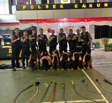” Terdapat 12 (dua belas) remaja berikut barang bukti Sajam berbagai jenis , handphone, diserahkan oleh Tim TP3 Polres Metro Jaktim ke Polsek Cakung.” Ungkap Kapolsek Cakung Kompol Panji Ali Candra saat dikonfirmasi.