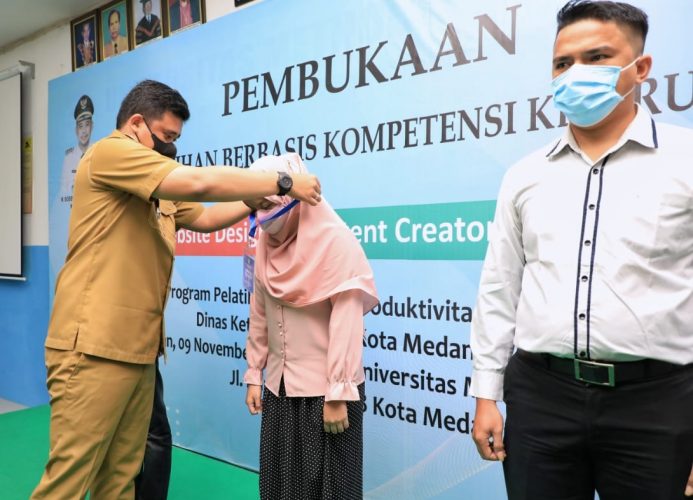 Perindonesia.com | Medan – Wali Kota Medan Bobby Nasution membuka Pelatihan Berbasis Kompetensi Kejuruan berupa Website Design, Content Creator dan Mural di Universitas Methodist Indonesia, Jalan Hang Tuah Medan, Selasa (9/11). Diharapkan kegiatan ini dapat mengembangkan talenta dan kreativitas yang dimiliki para generasi muda sehingga menjadi generasi muda yang terampil dan berdaya saing.
