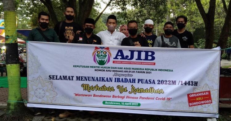 Aliansi Jurnalis Independen Bondowoso ( AJIB ) terus bergerak melakukan kegiatan Baksos dan hari ini memberikan takjil kepada pengguna jalan di pusat kota alun-alun Bondowoso, Minggu (10/4/2022).